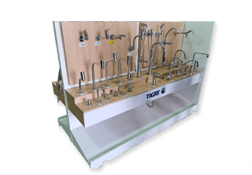 ● Expositores de Parede: Fixados nas paredes, são uma solução prática para economizar espaço e exibir produtos ou informações de forma vertical.